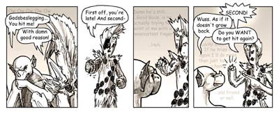 (This, just as a note, is where the strip really starts to shift focus from gaming in-jokes set in a fantasy world, to a full-fledged story that happens to have a fair share of jokes.)