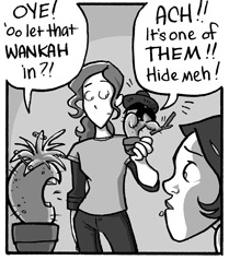 Monday’s strip involved our protaganist Hazel detailing the consistency and jiggle factor of her “luscious” ass. Last Friday’s strip featured a heartfelt moment of love between two friends. The strip before that involved a shouting match between their talking pet cacti.