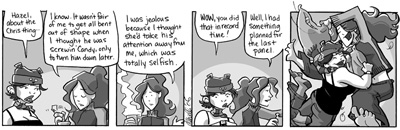 As one of the strips I’ve been reading since it began, it’s always cool – and a little startling – to realize how far it has progressed since it began. I’ve mentioned before that Girly is at heart a fantasy comic – but it’s also a romance comic, a superhero comic, and absurdist humor, all at the same time.